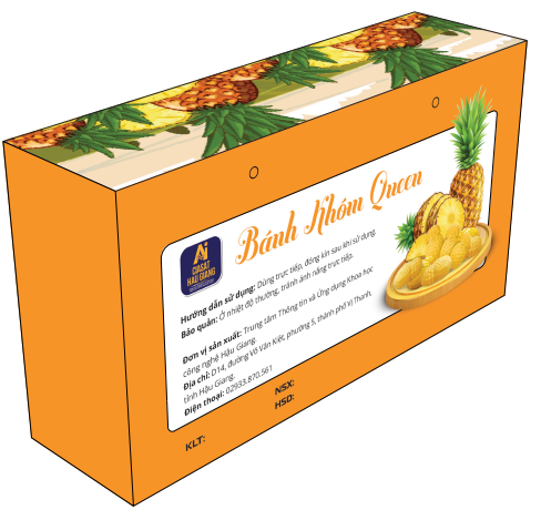 Chiếc hộp không đơn thuần là vật chứa đựng. Nó là câu chuyện đầu tiên sản phẩm kể với người tiêu dùng. Tông vàng đậm chủ đạo của hộp Bánh Khóm Queen gợi lên hình ảnh những ruộng khóm (thơm) Hậu Giang (TP Cần Thơ) trải dài dưới nắng vàng, trĩu quả ngọt. Màu sắc ấy là lời hứa về hương vị thuần khiết, đậm đà được kết tinh từ thiên nhiên. Hình ảnh minh họa sống động, chân thực về trái khóm và những lát bánh vàng ươm không chỉ kích thích thị giác mà còn khẳng định sự tươi ngon, nguyên chất của nguyên liệu.