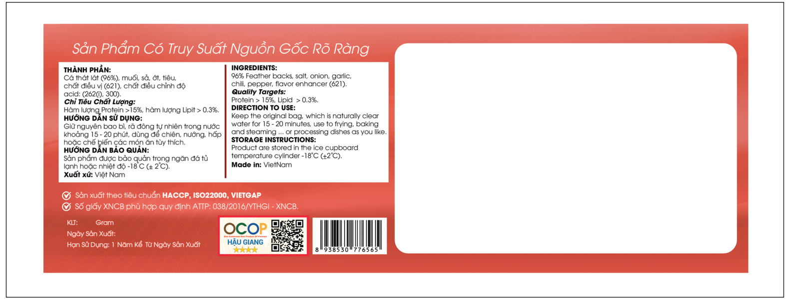 - “Deboned Featherback fish Lemongrass with Chili Flavor” – Phiên bản tiếng Anh song hành cho thấy tầm nhìn hội nhập, sẵn sàng chinh phục các thị trường xuất khẩu.