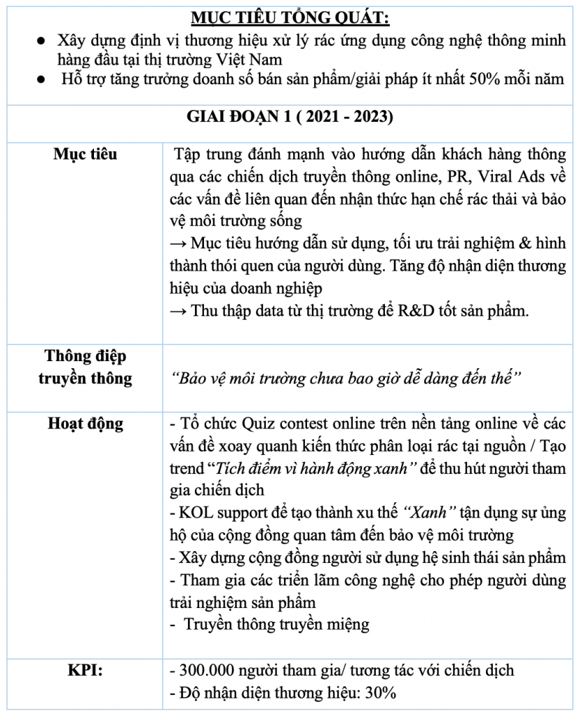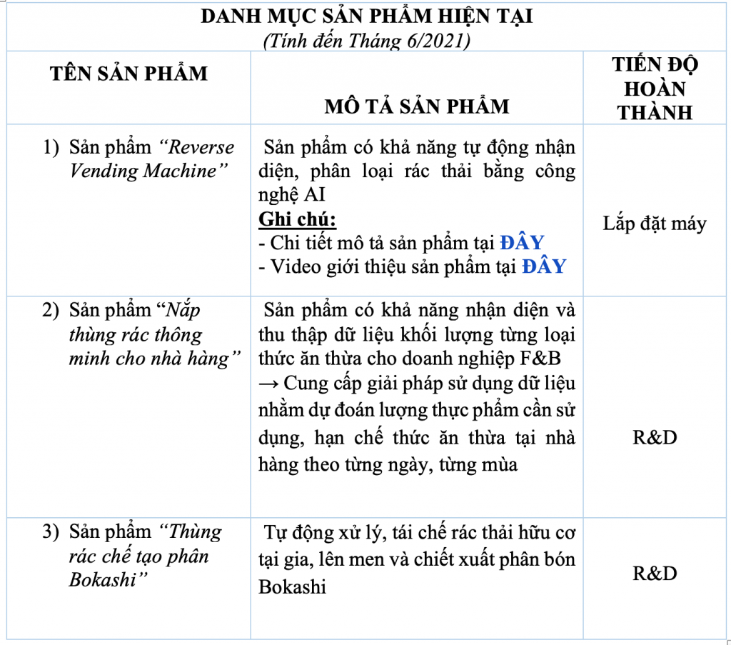 - Về công nghệ, như chúng tôi đã phân tích thị trường ở trên, tại Việt Nam hiện nay thiếu các doanh nghiệp đánh trực tiếp vào phân khúc sản phẩm/ giải pháp bảo vệ môi trường xoay quanh công nghệ nhận diện, phân loại, tái chế thông minh cho phân khúc hộ gia đình và doanh nghiệp