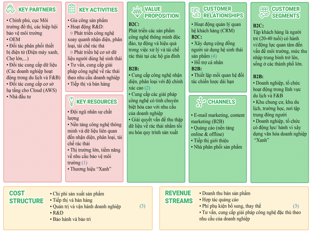 - Mô hình B2C: Phát triển các sản phẩm công nghệ thông minh, độc đáo trong việc xử lý và tái chế rác thải tại các hộ gia đình