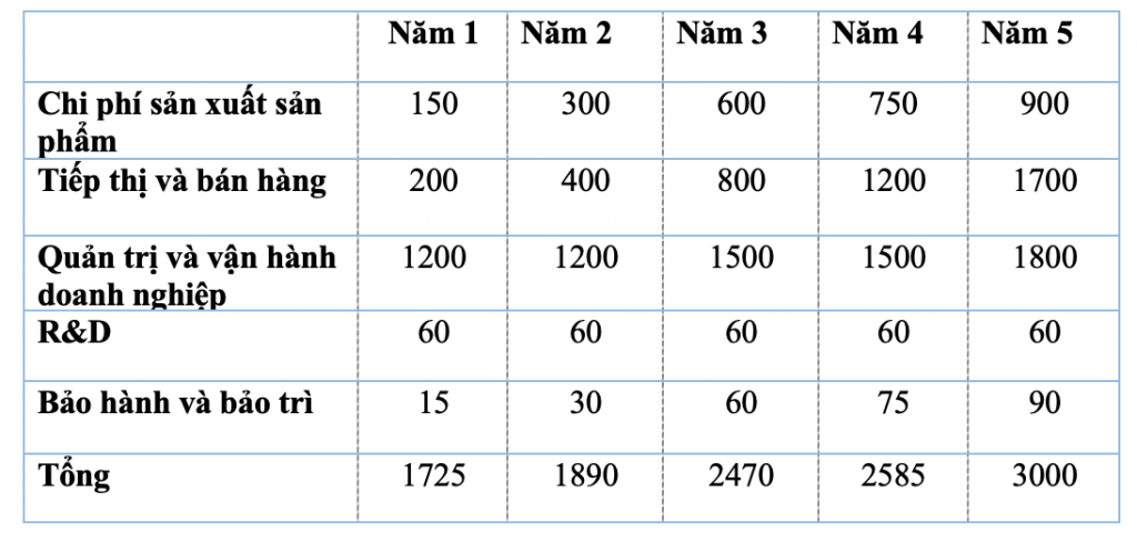 B-6. Bảng chi phí dự đoán trong 5 năm (đơn vị: triệu đồng):