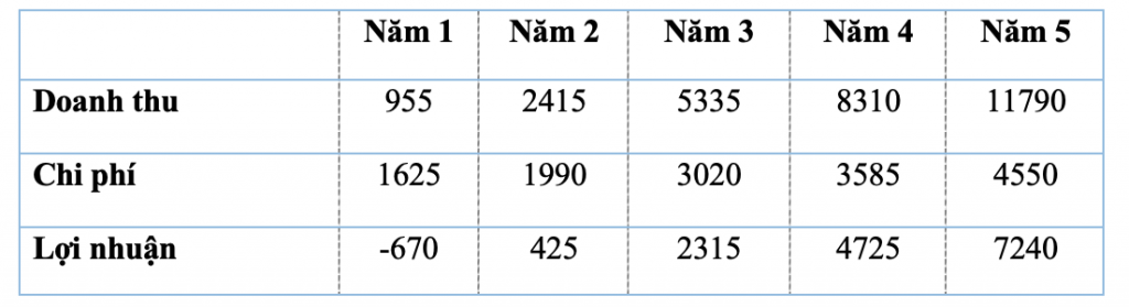 B-7. Bảng lợi nhuận dự đoán trong 5 năm (đơn vị: triệu đồng):